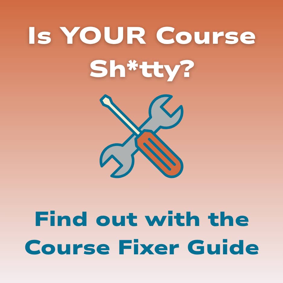 You remember that sh*tty course you bought? The one that’s a video vault, confusing as all get out, or just didn't get you results? You're not alone. This Course Fixer Toolkit helps you NOT do that to your clients by showing what creates success barriers and how to fix those problems. Stop creating the frustrating experiences everyone else is and build courses people actually get success from.